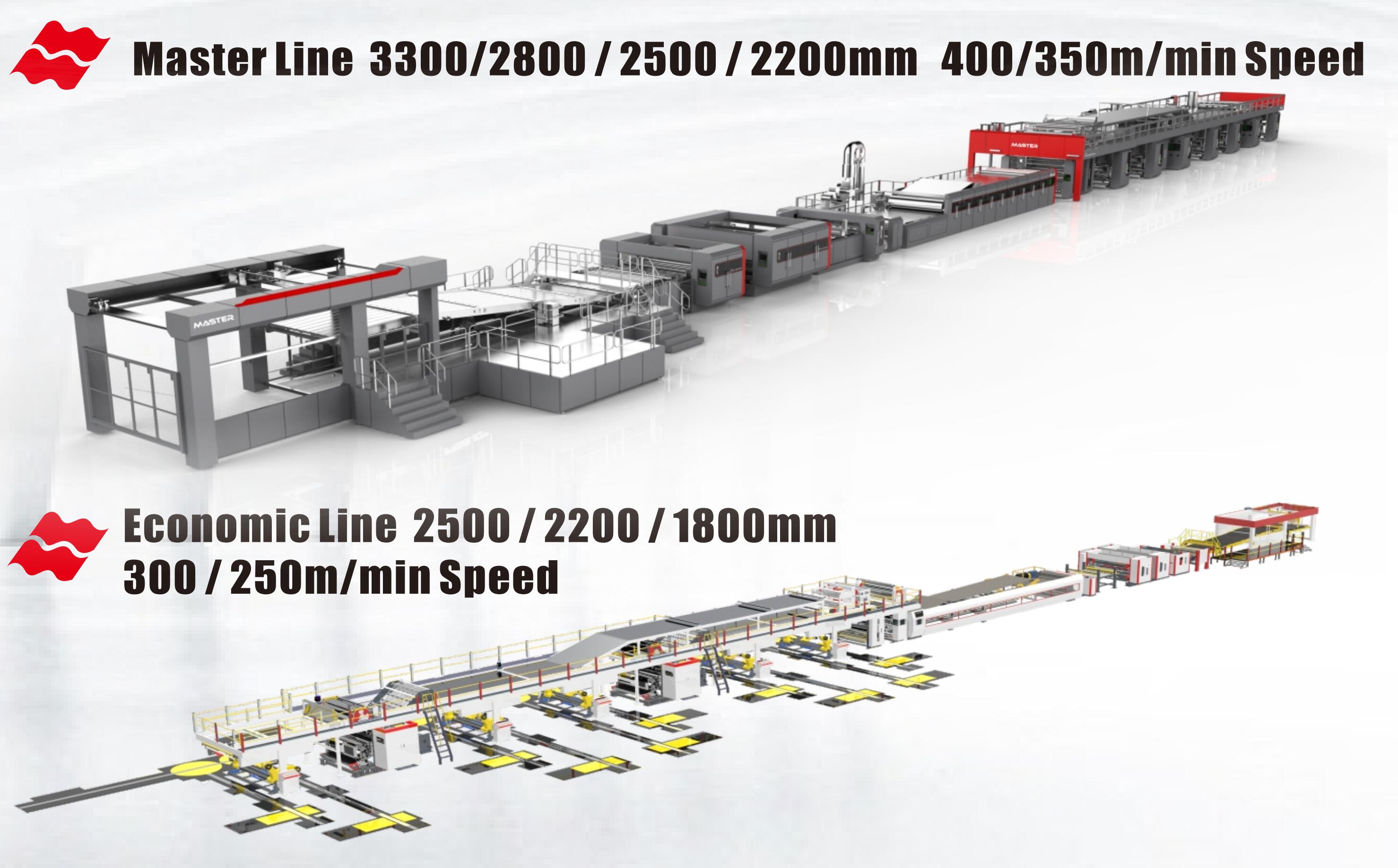 There are many factors, such as paper, glue, pressure, machinery, operation, temperature, etc, to effect our production. At the old days, paper just using few kinds of item, which no need to change paper frequency during production, but now adays, we may change 15 times, or 20 times of different kinds of paper to match the customers' requirement. And ususally, we may only use min. about 100 gsm of fluting or medium, but now adays, we need to use even 80gsm fluting, or 50gsm medium. By traditional machinery, the old technology of single facer like fixed type or mould type, which is not suitable to run such low gsm paper and poor quality paper, even though in low speed performance. So to solve this issue? The answer will be the Negative Cassette type Single Facer with the Soft Touch technology & Line Pressure Control (LPC) & synchronized gluing. Only have this kinds of high performance machine, then you can run such of orders.