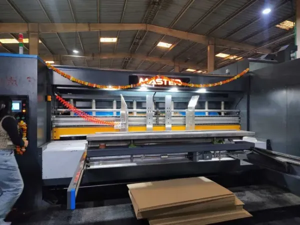 Our customer is in Europe, focus on manufacturing cardboard carton. As the below picture show, the production process is 1st colorful printed by printing machine, 2nd accurate cutting & creasing by automatic flatbed diecutting machine, 3rd do the nice gluing & folding by automatic folder gluer (straight line & bottom lock, 4&6 corner). And the cardboard is transited by roller conveyor system to improve the efficiency & reduce the labor intensity.