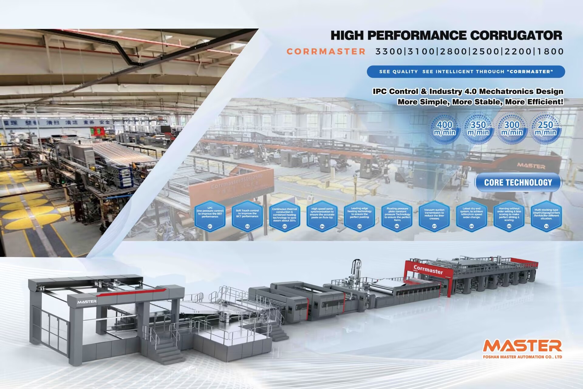 Master launched the intelligent corrugator: Corrmaster which is based on IPC with EtherCAT communication and full servo drive and real time control and process control which can make high performance corrugated board easily.