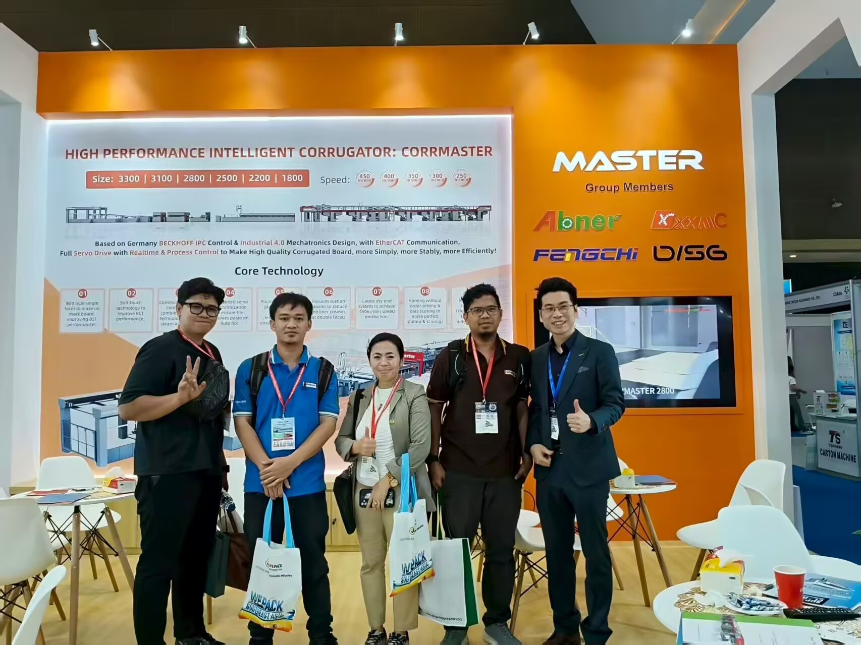 The WEPACK ASEAN 2025 is held in Jarkata, Indonesia from 28th to 30th of July by Reed Exhibition. MASTER as the VIP exhibitor invited by organizer, has taken the nice booth to display the latest technology of Intelligent corrugator: Corrmaster 450 speed, based on BECKHOFF IPC system with EtherCAT communication with real time control and process control to lead the market.