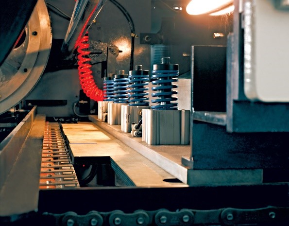- Side baffle and back barrier coordinate and can be adjusted by motor based on the sizeon productiion d irection.