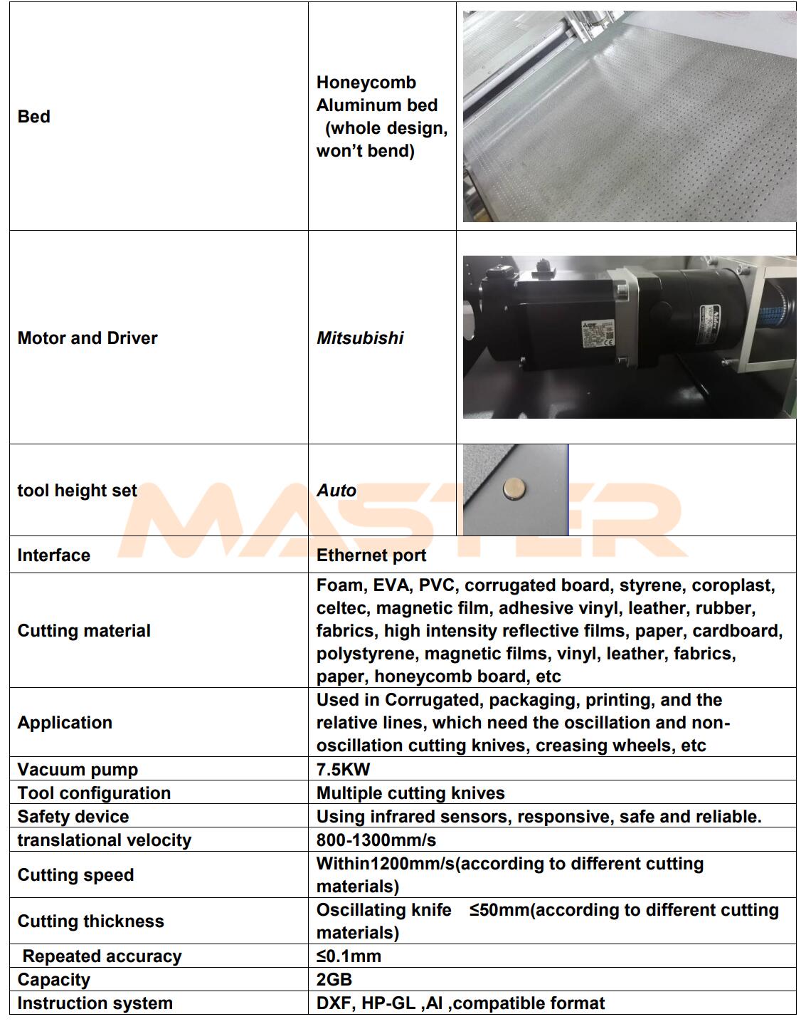 High speed flatbed digital cutter specially equips the vibrating knife, creasing wheel, drag knife, v cut knife and pen, it can cut many kind of materials, such as corrugated paper, honeycomb board, card paper, foam, grey board, KT board, PVC expansion sheet and also the ads and display industry’s materials PVC and so on. M85 is more flexible and broaden the cutting application. It can be used to